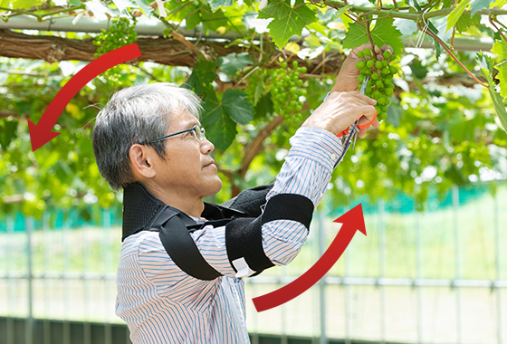 In the agricultural field, it is still largely done by hand, and in fruit tree cultivation, many tasks such as pruning, grain picking, and harvesting are done by raising arms for a long time. This kind of work puts a heavy burden not only on the shoulders and arms but also on the legs and waist. bonbone MOTT is an original supporter specializing in arm-raising work by analyzing the work posture peculiar to fruit tree farmers.