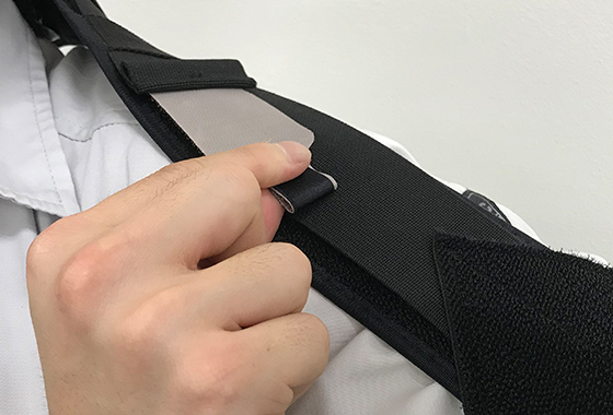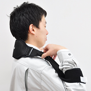 It weigh only about 170g, which is about the same as a general sports towel. Since no electric parts are used, the weight burden is small and you can use it as if you were wearing a towel around your neck. Only 3 steps to put on. The adjust belts on both arms allow you to easily adjust the support.