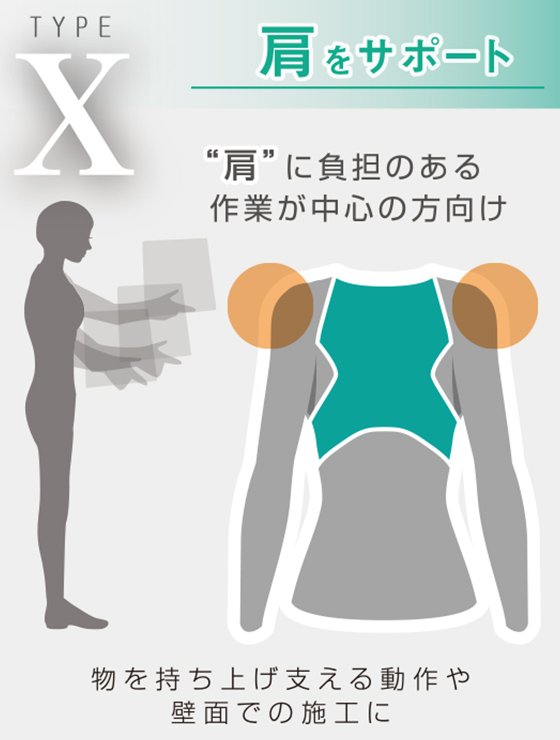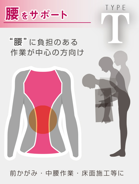 Two types specialized for "shoulders" and "waist," provide intensive support for the areas of concern. The stretchy fabric provides firm support for the shoulders and waist.