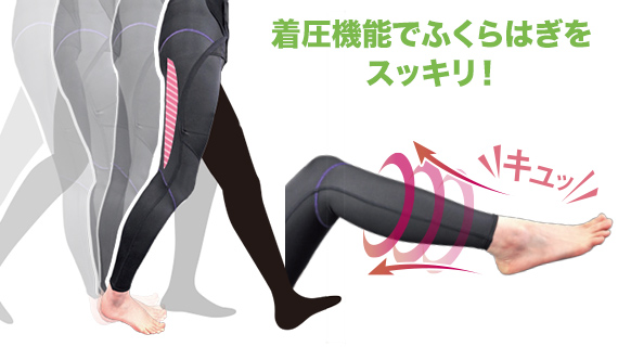 The belt part wrapped around the waist approaches the back of the thighs to support swinging a leg when walking in order to make walking easier. It also makes it easier to walk up and down stairs. The compression function tightens the calf appropriately, so it is recommended for jobs that require a lot of standing. * The lower part of the body is the same for both types.