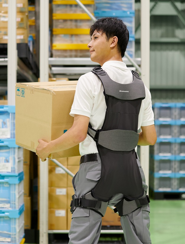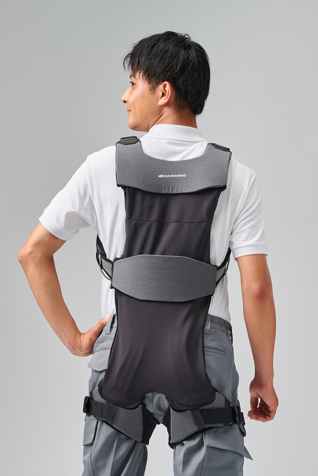 DARWING HAKOBELUDE can be easily and lightly worn like a backpack, and assist the lifting-up movement or half-crouching position by the power of special high-elastic rubbers placed from the shoulders to the waist, and artificial muscles placed from the waist to thighs.By crouching down, you will be pulled from behind, and the contractile force of the rubber provide the assistance force that will naturally raise your upper body.As a result, it exerts a function of assisting the muscles from the back to the thighs when lifting up heavy stuff.