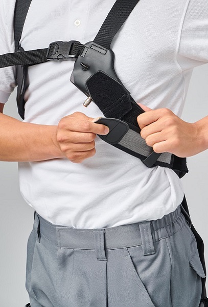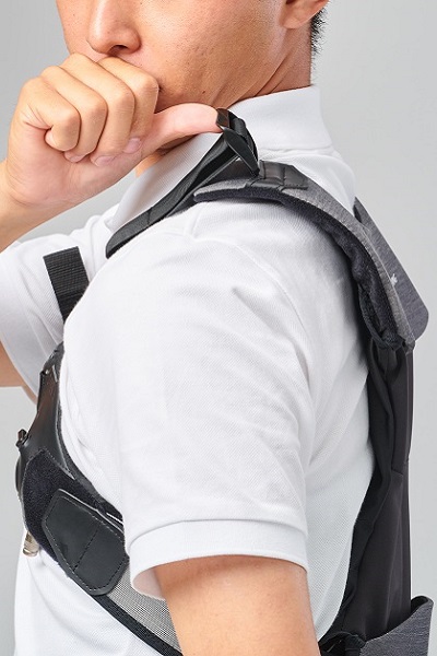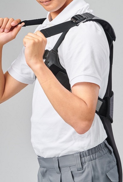 It weighs only 800g! Light & flexible just as clothing.The thin design makes it easy to move even in narrow spaces, and it hardly interferes with complex movements during work, such as rotating backwards, getting on and off the vehicles, or sitting on a chair.