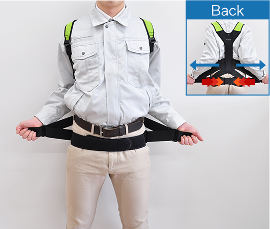 If you work in a bad posture, the burden on the muscles around your pelvis and back will increase, which may cause lower back problems during work.Pelvic support function (W gear structure) + back assist function + buttocks assist function provides firm support from the back to the buttocks.
