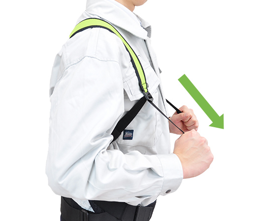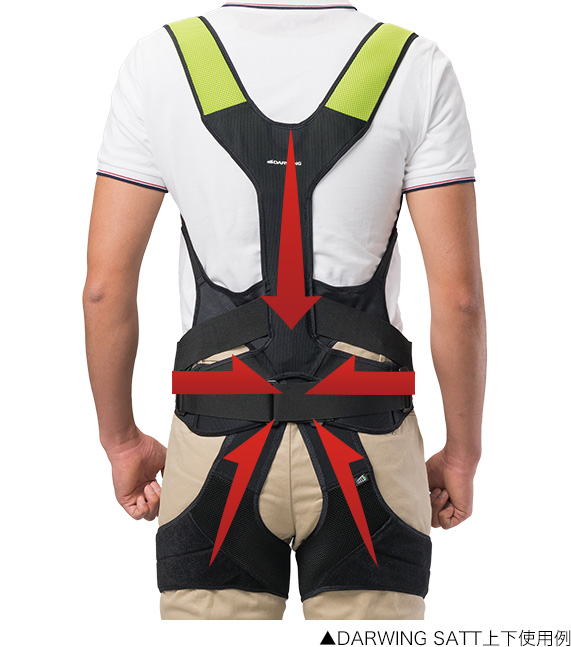After wearing the upper body of DARWING SATT, fasten the thigh belt