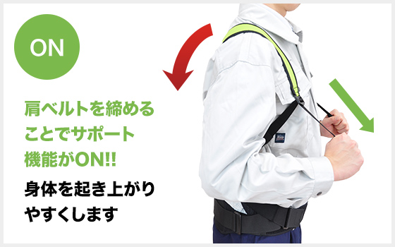By bending forward, the elastic rubber on the back stretches, and the tension is used to make it easier for the body to get up.