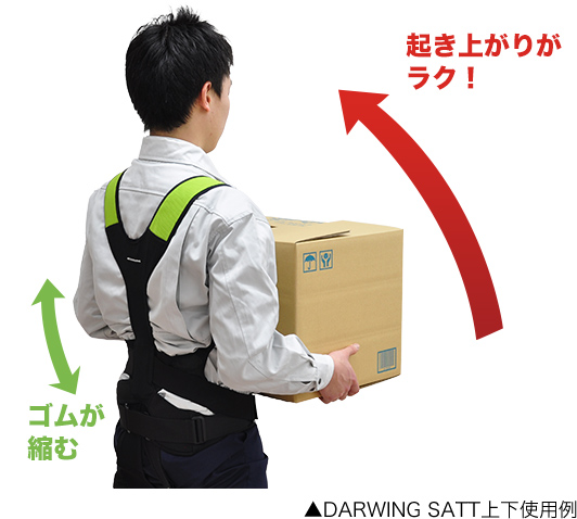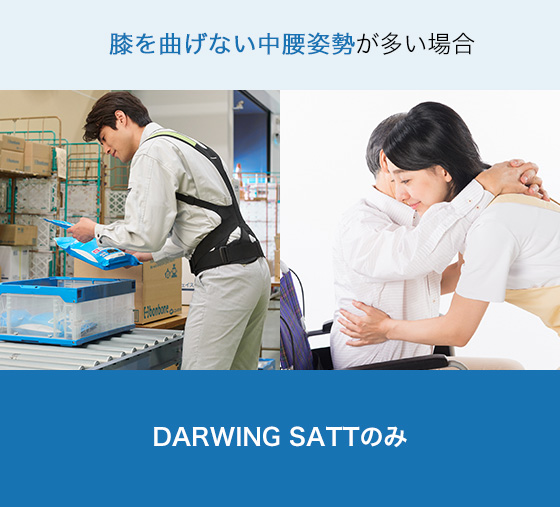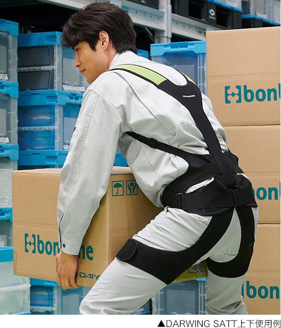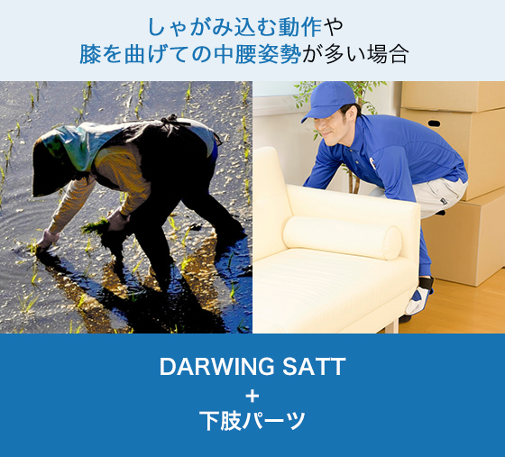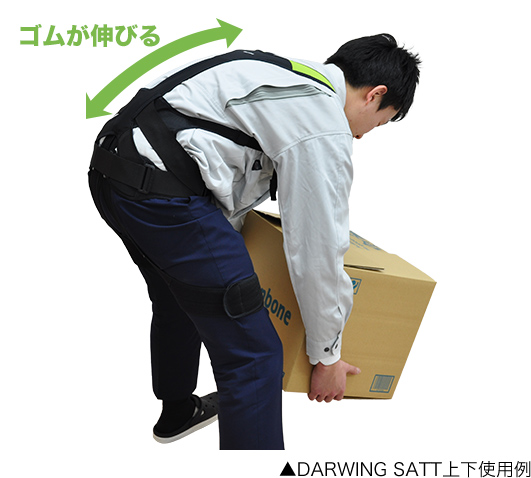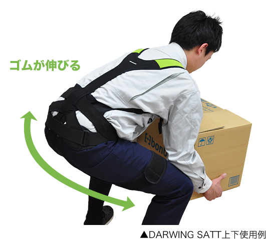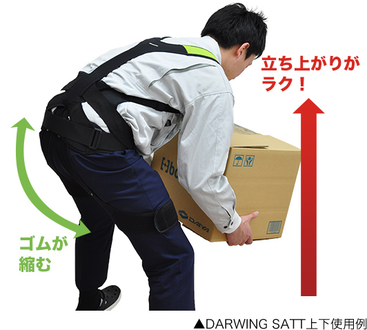 DARWING SATT was developed to reduce the burden on lower back of such as the workers in the factories, logistics, agriculture, construction, and long-term care workers.