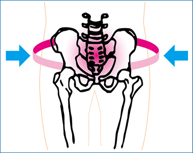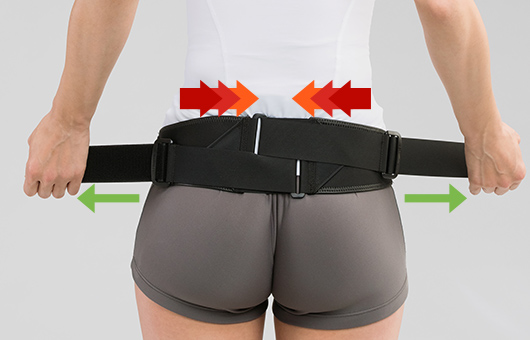 Anti-slip material is placed so as to pinch the sacroiliac joint, increasing the tightening force and preventing slipping.