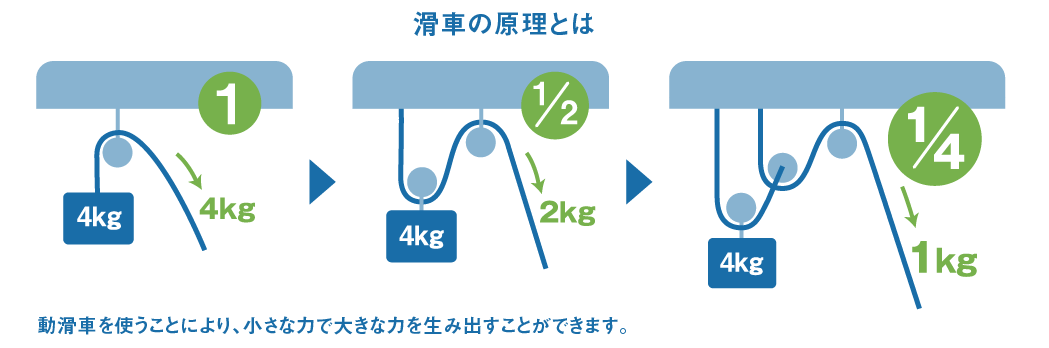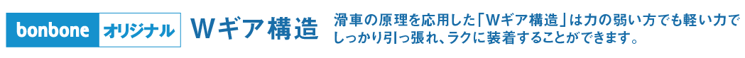 W-Gear structure, based on the principle of a pulley, makes it possible to pull the belt with light force.